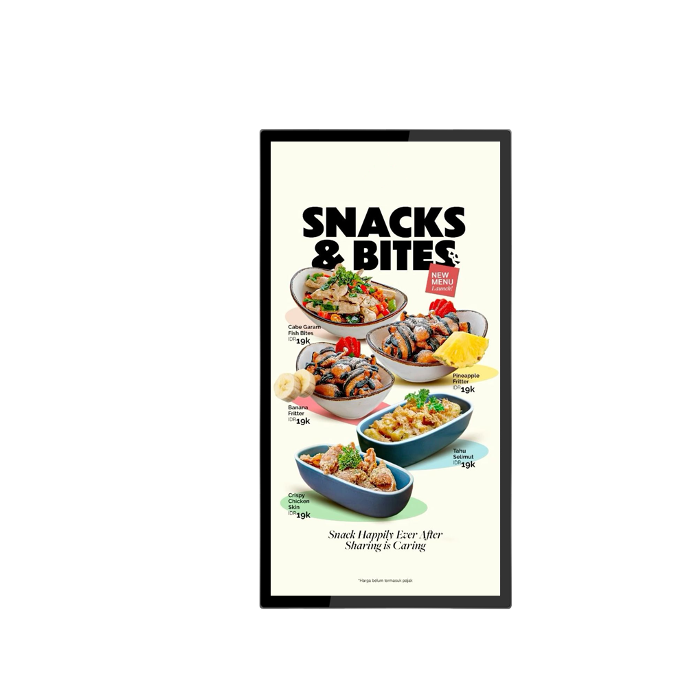 A modern and streamlined restaurant digital display solution for menus, promotions, and specials, enhancing customer experience with dynamic content.