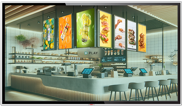 A modern and streamlined restaurant digital display solution for menus, promotions, and specials, enhancing customer experience with dynamic content.